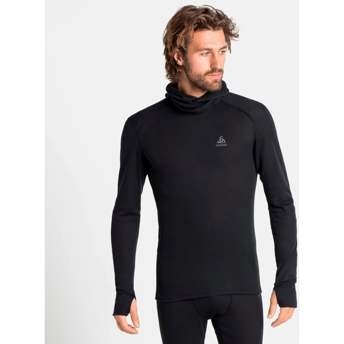 Details of the Odlo Men’s Active Warm Base Layer Top with Facemask